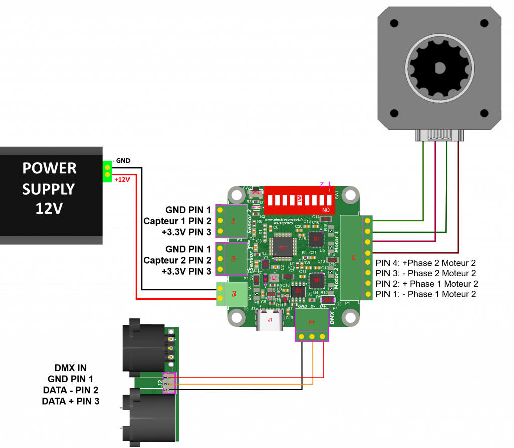 Connexion pour un Moteur Bipolaire Nema 17 classique 12 V