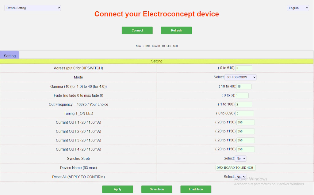 Device Name (63 max) : DMX BOARD TO LED 4CH