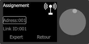 • Aller dans le menu Assignement de votre émetteur, choisissez l’ID de votre univers ID DMX HF et l’adresse DMX si nécessaire pour vos récepteurs DMX HF;