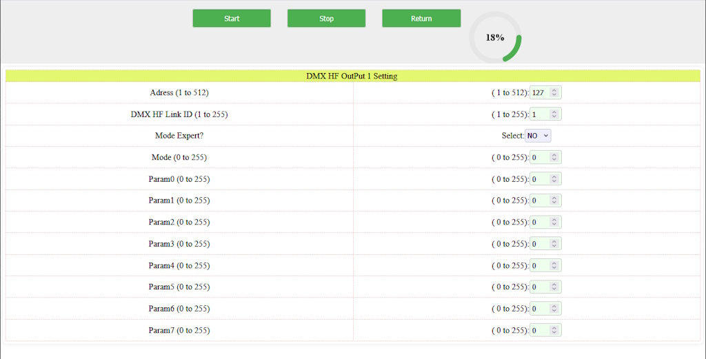 Pour chaque Univers HF les 512 canaux sont envoyés. Une synchronisation des trames permet de n’avoir aucune latence entre l’émetteur et le récepteur.