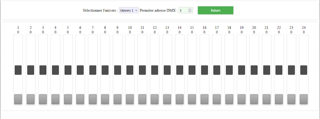 Faders Control pour modifier les valeurs DMX d’un Univers DMX HF de façon ponctuelle sans Console ni Logiciel nécessaire