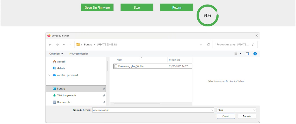Update Over Air pour mettre à jour les logiciels embarqués dans les produits HF Electroconcept (Attention réservé aux experts sous la direction de notre SAV !)
