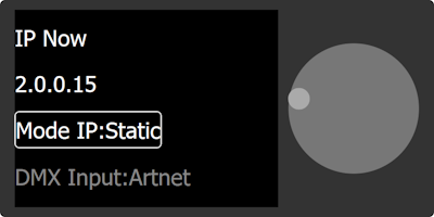 Le Node Art-Net / sACN se configure avec dmx_tools, via l’écran et sa molette de sélection ou par l’interface de son serveur web embarqué disponible à l adresse IP de l’Emetteur DMX HF V3 Artnet/sCAN 4 Univers + POE