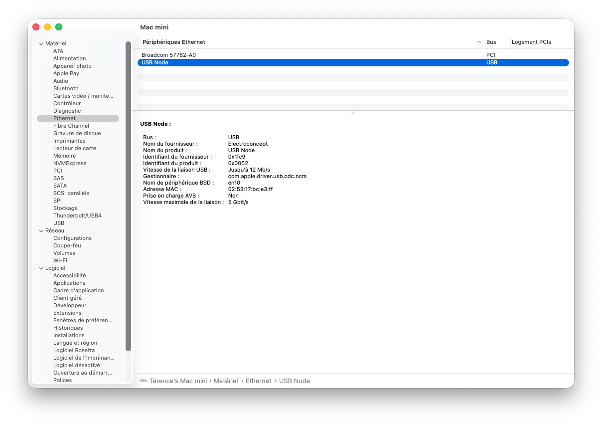 Exemple sur MacOS dans le menu Rapport système (Réglages Système -> Général -> Informations -> Rapport système) :