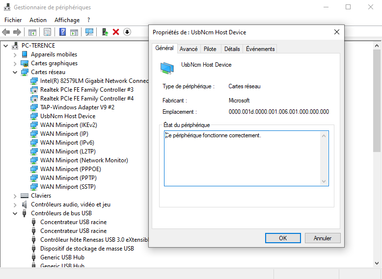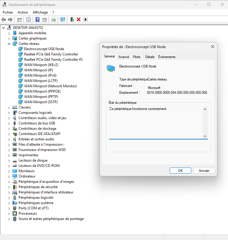 Une fois correctement configuré il doit apparaitre sous la forme d’une carte réseau.