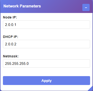 • Node IP : Adresse IP du boîtier (par défaut : 2.0.0.1)