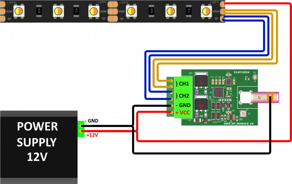 Please read carefully the following guide before using DMX_HF_V4_2X20A receiver board in OEM version.